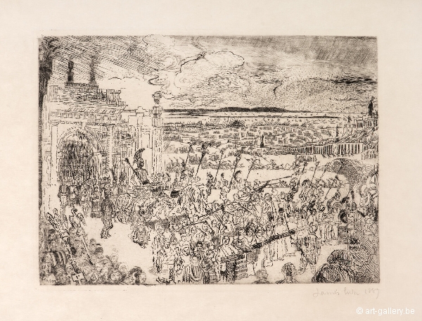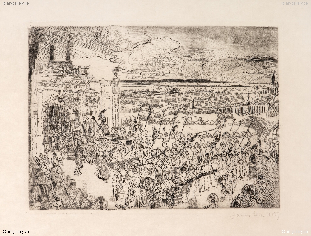 Ets van James Ensor met de hand gesigneerd en gedateerd. Opgenomen in het boek: A. Taevernier n° 78.