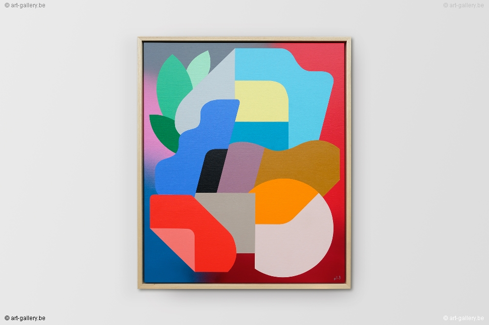 Origineel schilderij op canvas, gespannen op aluminum frame, voorzien van houtkleurige baklijst.
