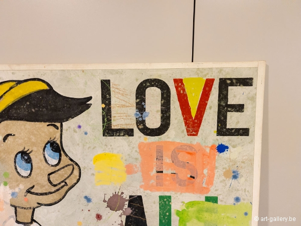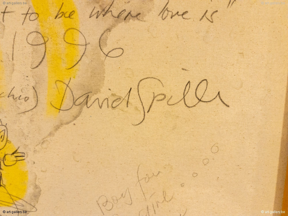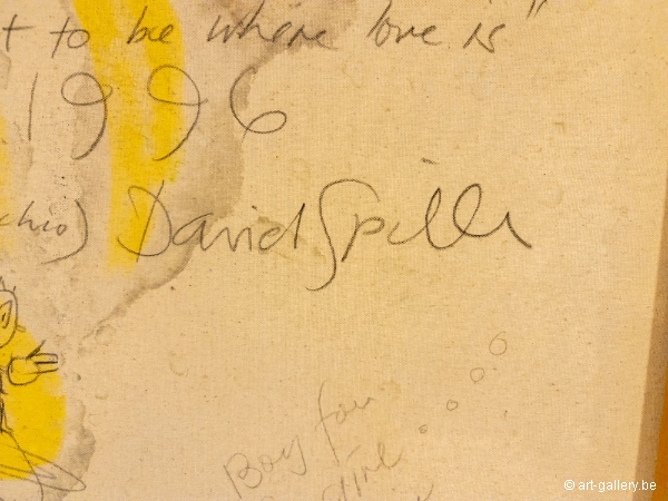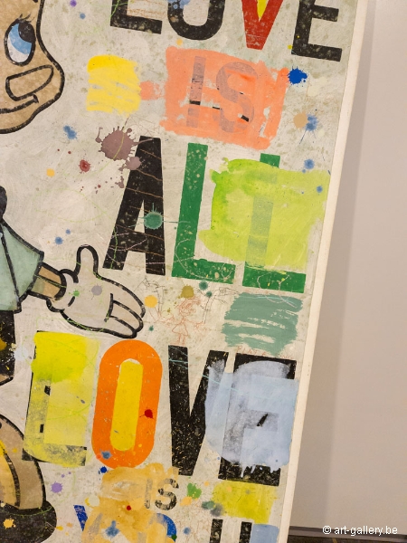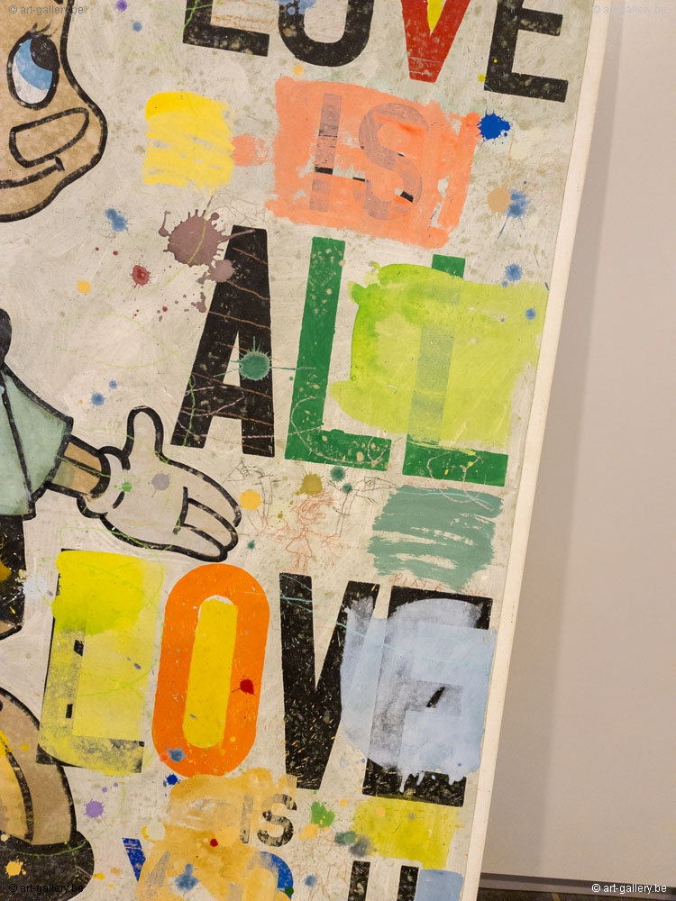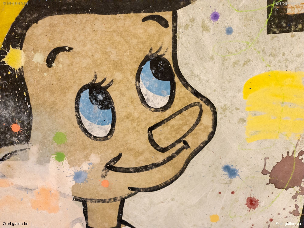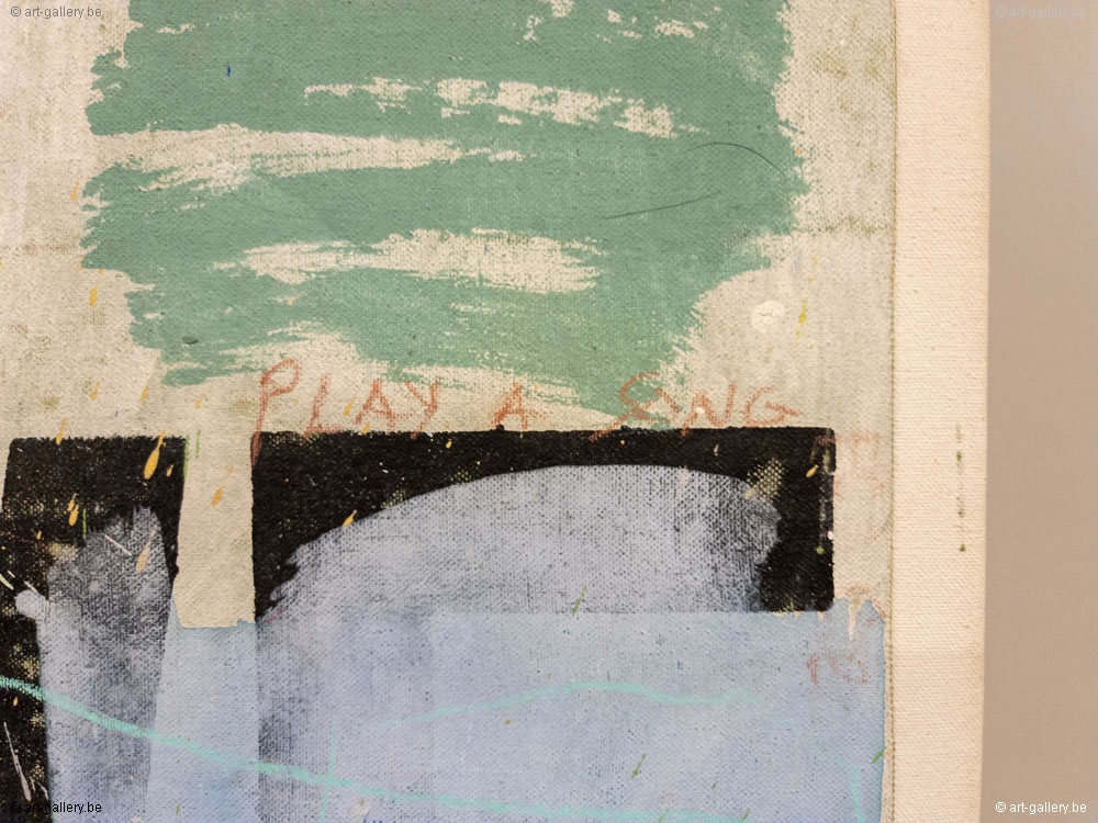 Mixed media op canvas, op de achterkant gesigneerd en voorzien van opschrift.
