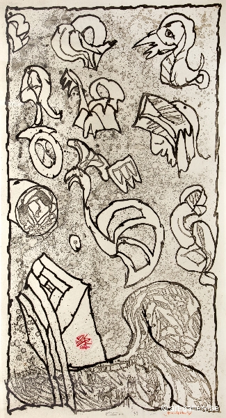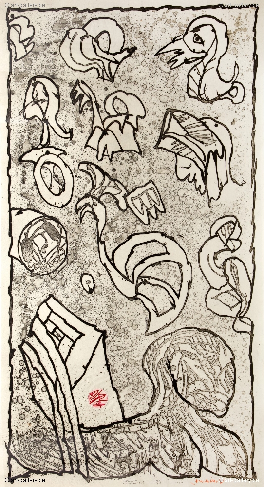 Ets op rijstpapier in een oplage van 35 exemplaren. Getekend en genummerd. Ingelijst in houten lijst met ontspiegeld museumglas.