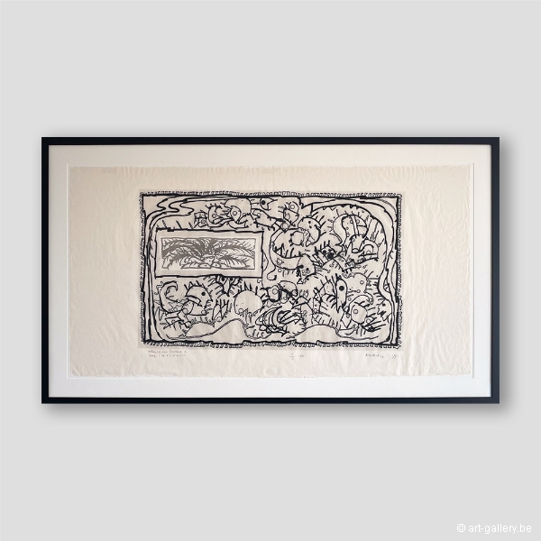 Extra info: Grote ets op rijstpapier van Pierre Alechinsky.