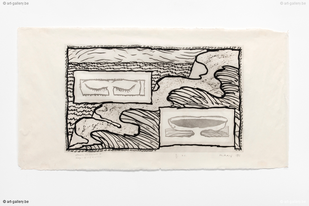 TOP: Slechts 5 exemplaren zijn op de markt gebracht. Alle andere exemplaren heeft Alechinksy gebruikt om te verwerken in originele schilderijen. Werk in optie