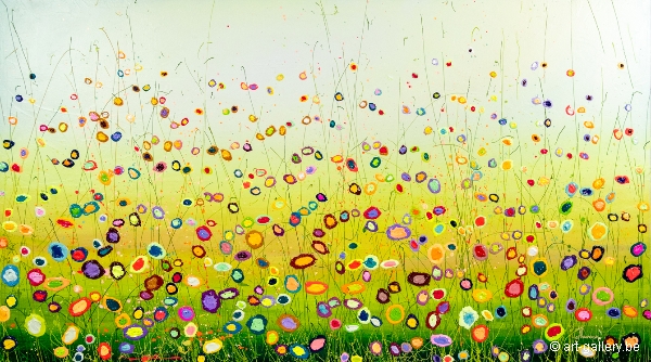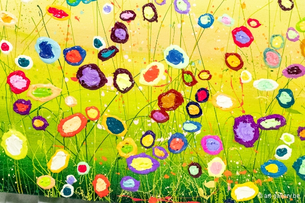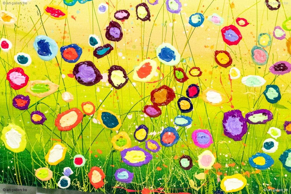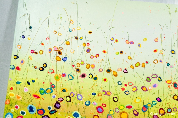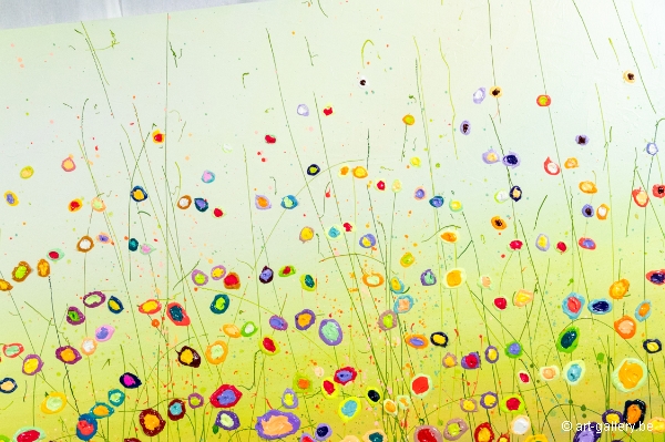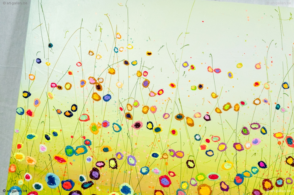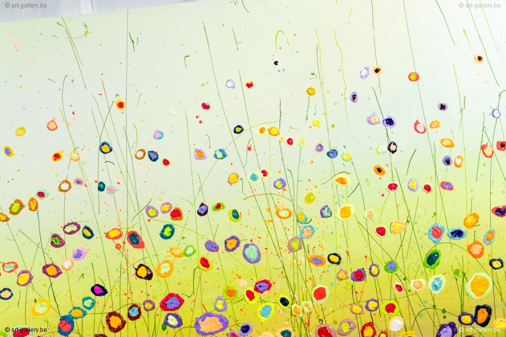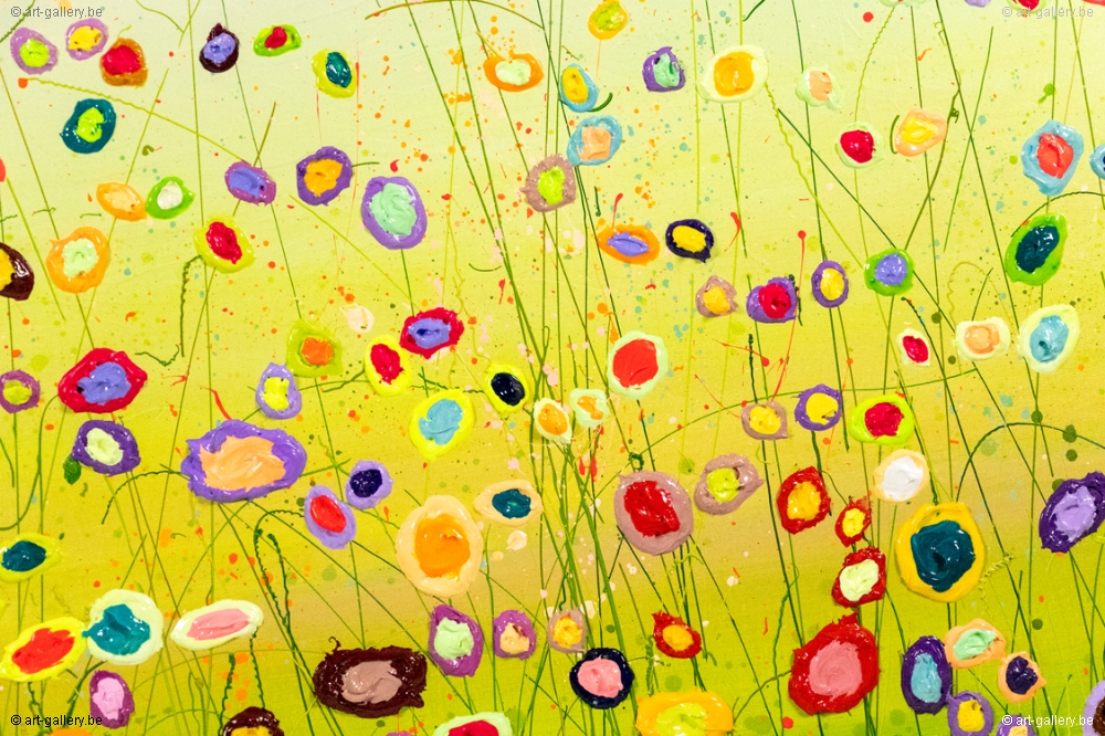 Het origineel schilderij is dik opgezet met acrylverf en heeft een schitterende kleurencombinatie. De speelsheid, vrolijkheid en levendige kleuren waar Yulia mee werkt zijn werkelijk prachtig en de moeite waard om eens in het echt te komen bekijken. De werken zijn opgespannen op de dik spieraam, waardoor het schilderij nog meer body krijgt.