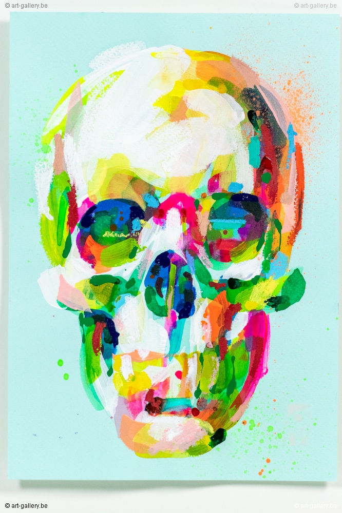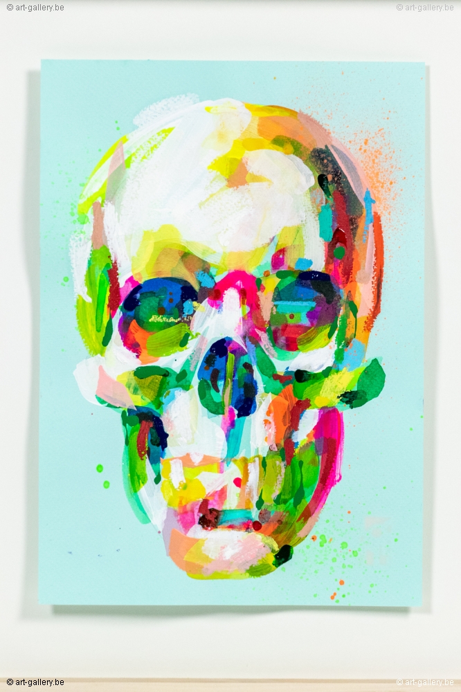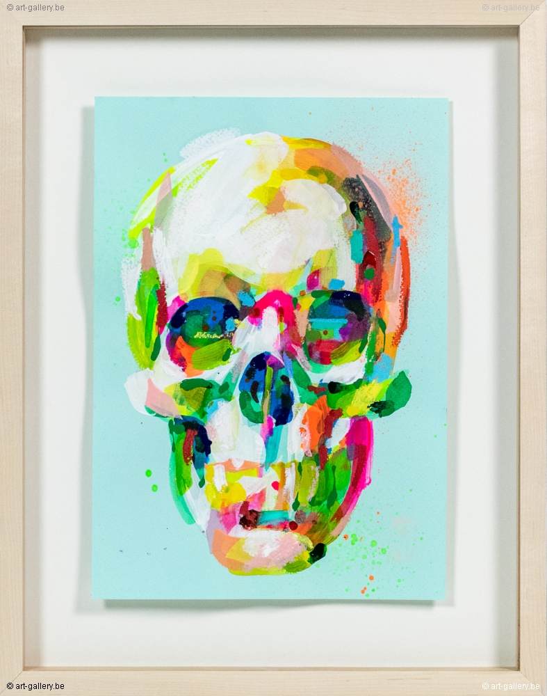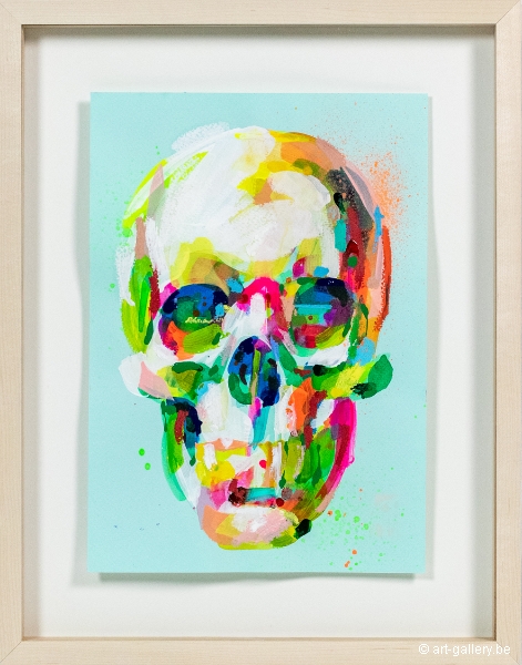 Origineel, uniek schilderij met acrylverf op papier. Ingelijst in houten kader met ontspiegeld museumglas. Het werk maakt deel uit van de zomer-expositie L Y F E '22.