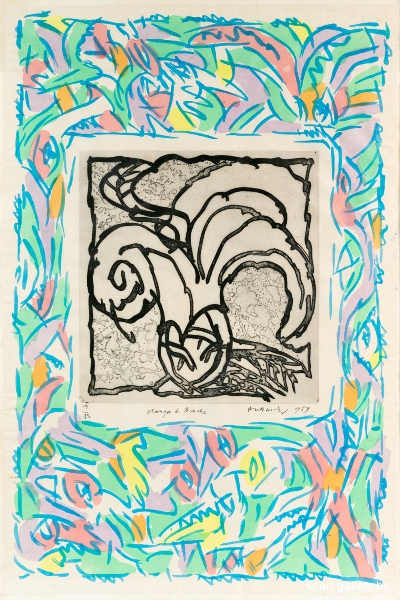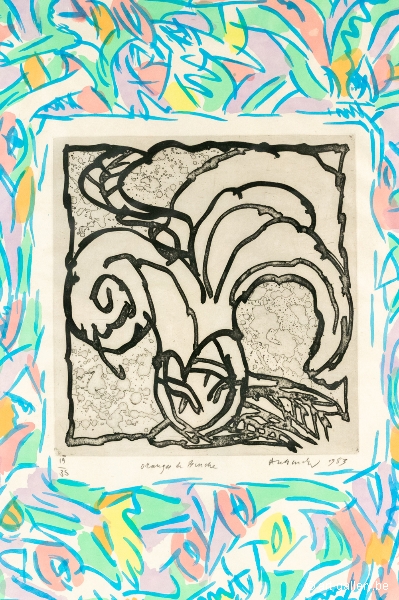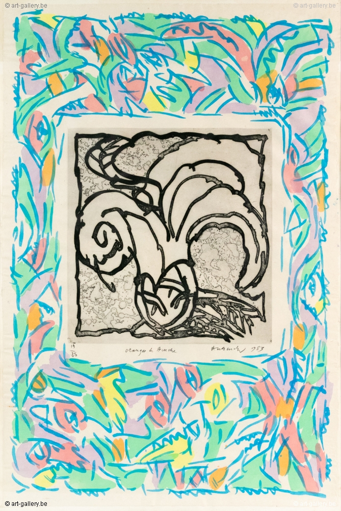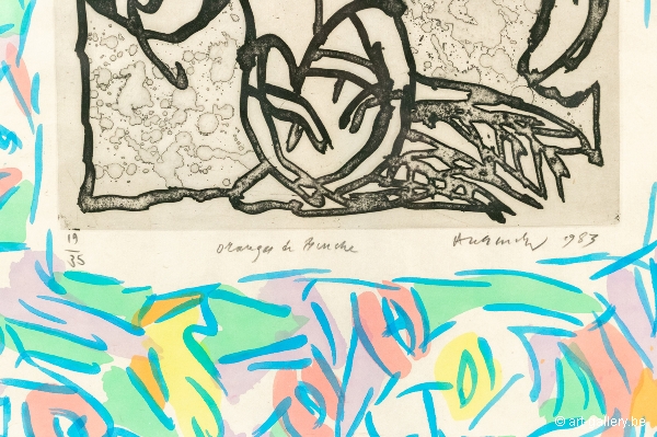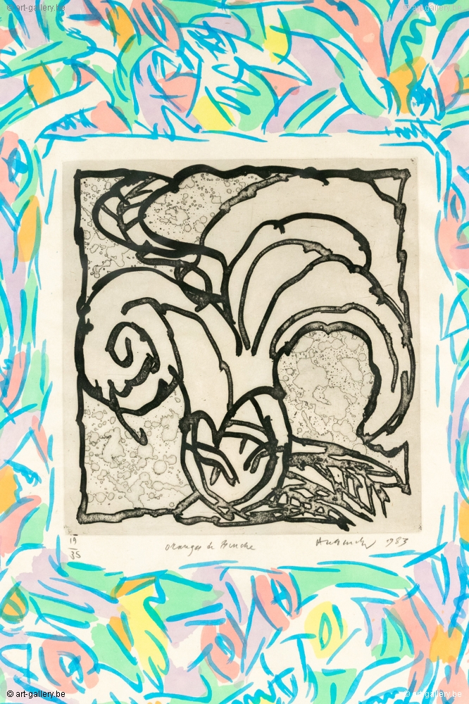 Ets aangevuld met kleurrijke pochoir van Pierre Alechinsky op rijstpapier. Met de hand gesigneerd en gedateerd en benoemd.
