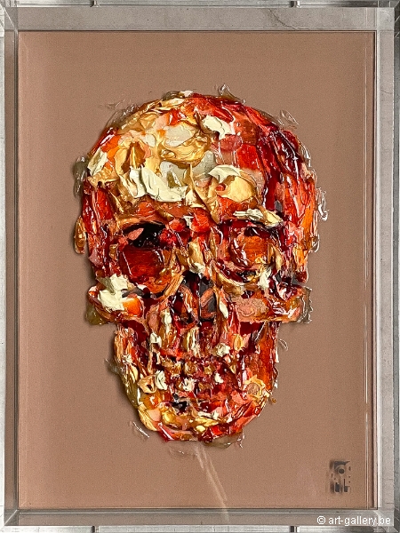Mixed media skull kunstwerk. Gemonteerd in een plexibox.