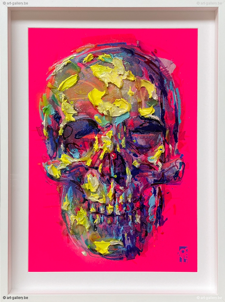 Origineel schilderij op papier van Steve Locatelli. Het werk is ingelijst in een witte lijst met ontspiegeld glas. Afmetingen ingelijst 76cm x 61cm.