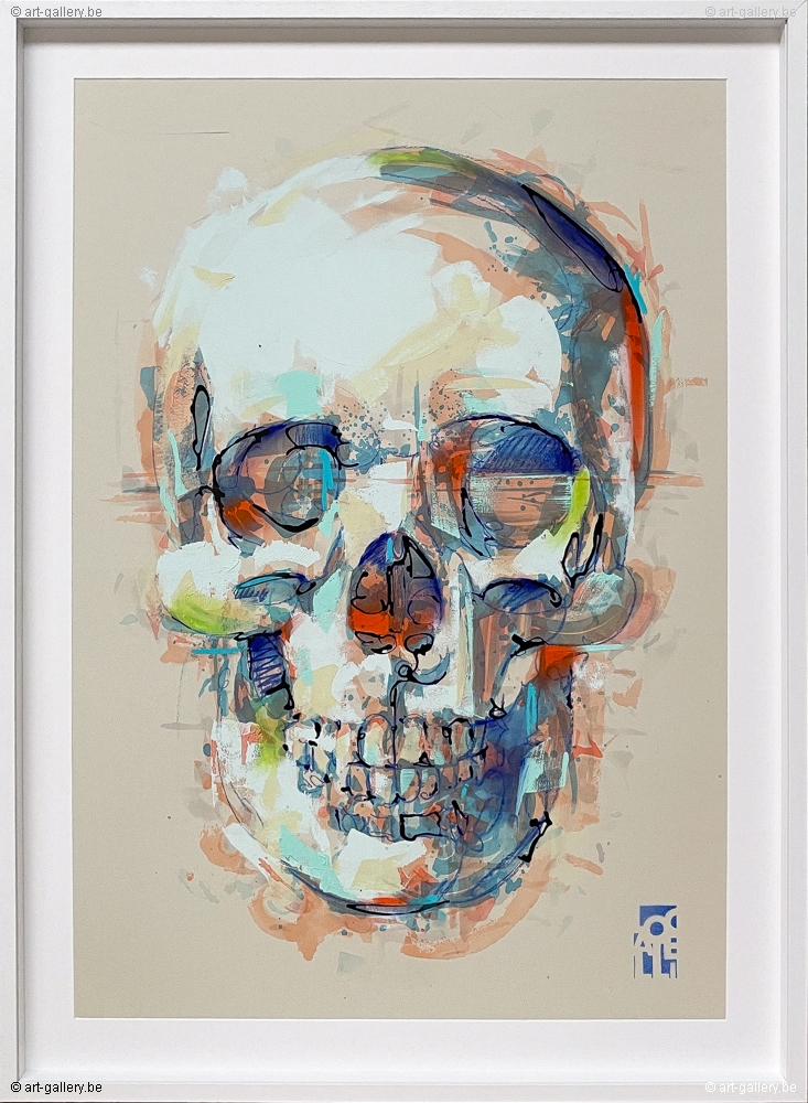 Extra info: Origineel schilderij op papier van Steve Locatelli. Het werk is ingelijst in een witte lijst met ontspiegeld glas. Afmetingen ingelijst 113cm x 83cm.