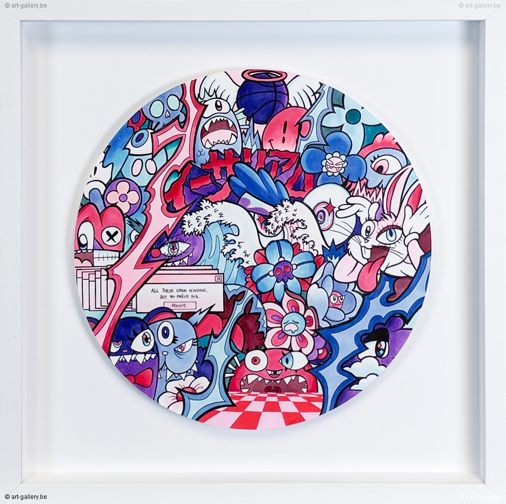 Originele tekening op papier van VEXX. Gesigneerd en gedateerd in potlood. WAVES is de basis waarop VEXX zijn tweede NFT gemaakt werd. Het werk is ingelijst in ontspiegeld museumglas. Afmetingen lijst 46cm x 46cm.
