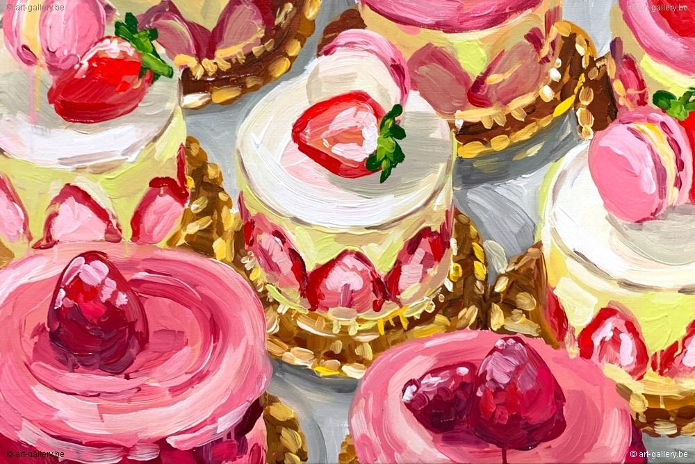 Origineel acrylverf schilderij op canvas, achteraan gesigneerd door Alice De Vliegher. Het werk komt uit de reeks patisserie.