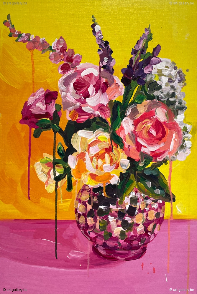 Origineel acrylverf schilderij op canvas, achteraan gesigneerd door Alice De Vliegher. Het werk komt uit de reeks Flowers.