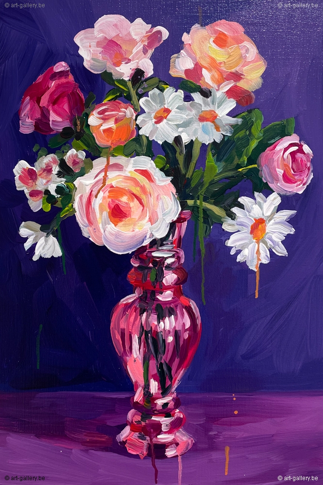 Origineel acrylverf schilderij op canvas, achteraan gesigneerd door Alice De Vliegher. Het werk komt uit de reeks Flowers.