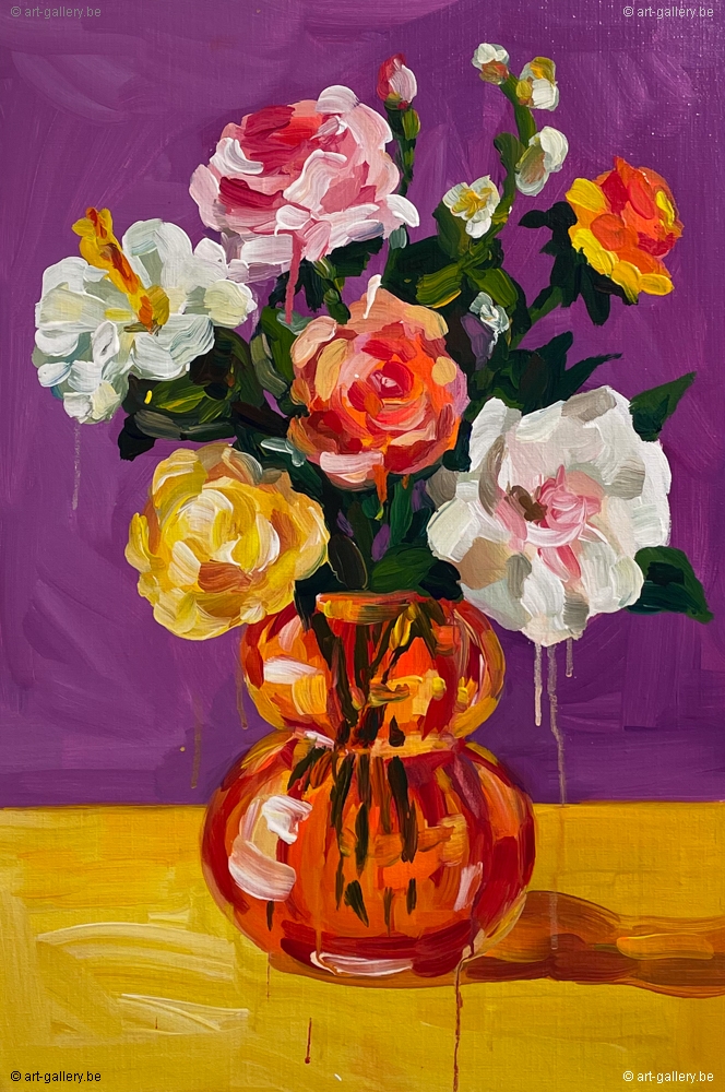 Origineel acrylverf schilderij op canvas, achteraan gesigneerd door Alice De Vliegher. Het werk komt uit de reeks Flowers.