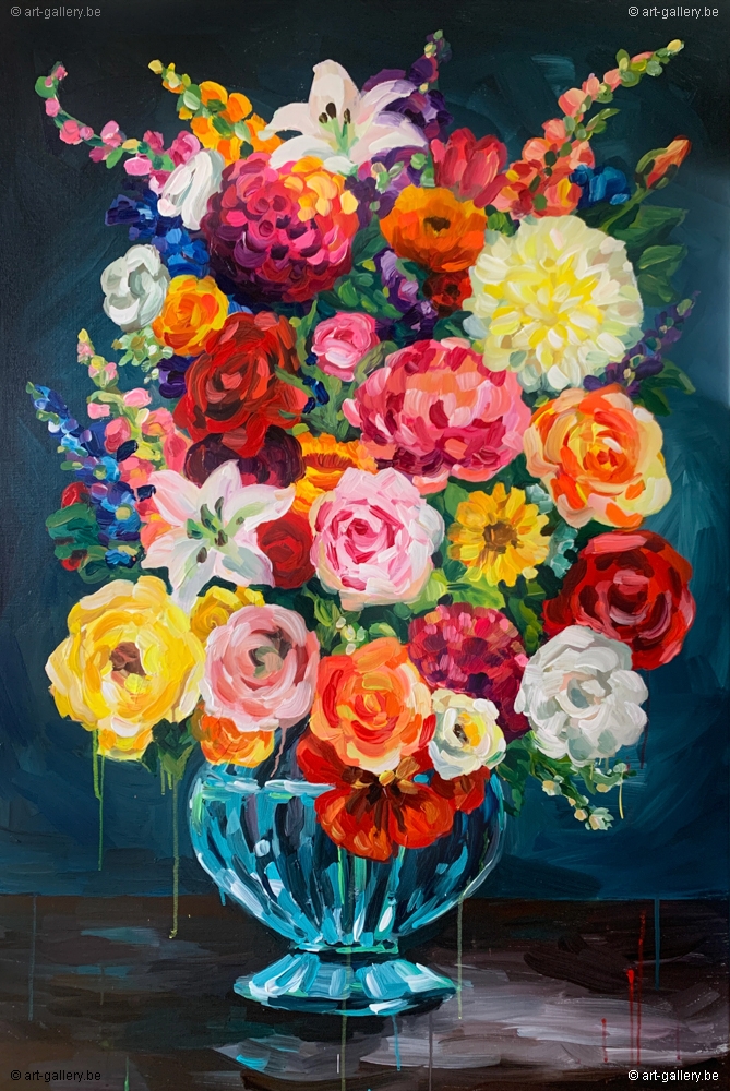 Origineel acrylverf schilderij op canvas, achteraan gesigneerd door Alice De Vliegher. Het werk komt uit de reeks Flowers. Werk in optie