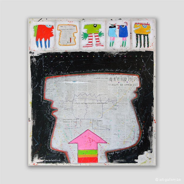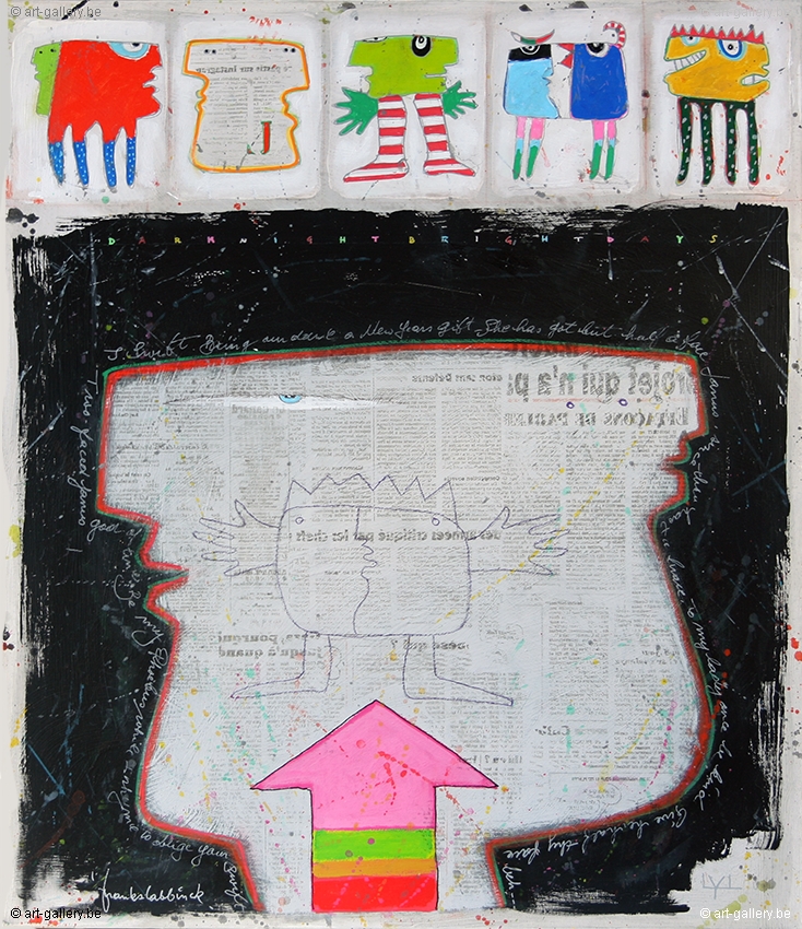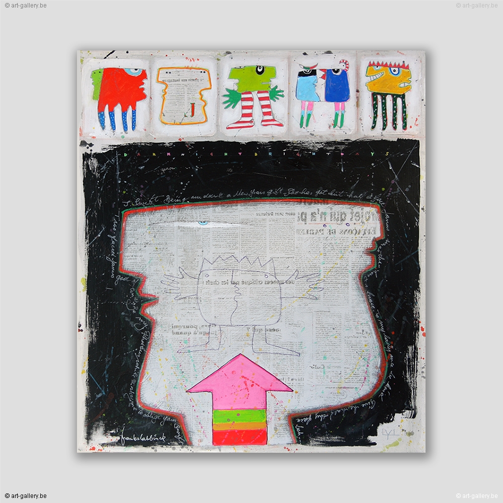 Origineel schilderij op canvas van Frank Slabbinck. Het werk is ingelijst in een zwarte baklijst.