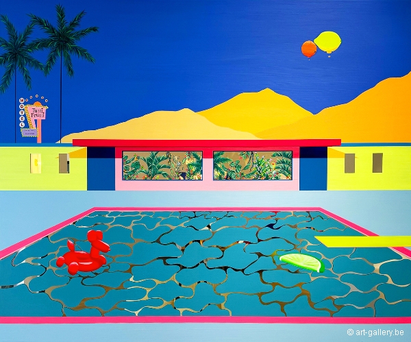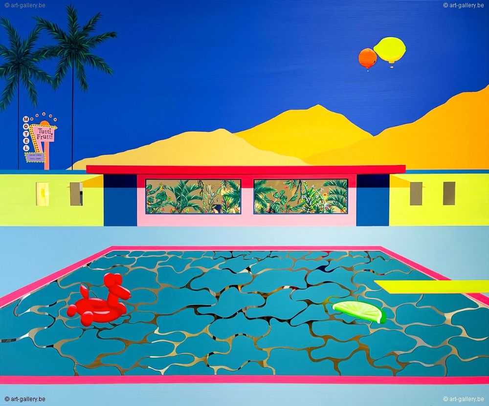 Extra info: Origineel acryl schilderij op Plexi spiegel. Het werk is omlijst door een licht metalen lijst. Zonder te weten waar we zijn, noch zonder te weten wat er gaat gebeuren, bevinden we ons op mysterieus kleurrijke plekken. Kalme, serene ruimtes die verloren lijken in de tijd en verstoken zijn van leven. En toch... Vervolgens ontstaat er een beweging en beginnen de spiegelvlakken de schilderijen te animeren dankzij de reflecties van het licht.