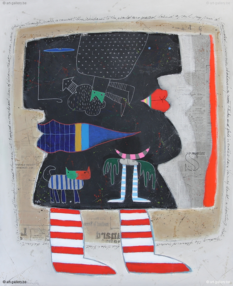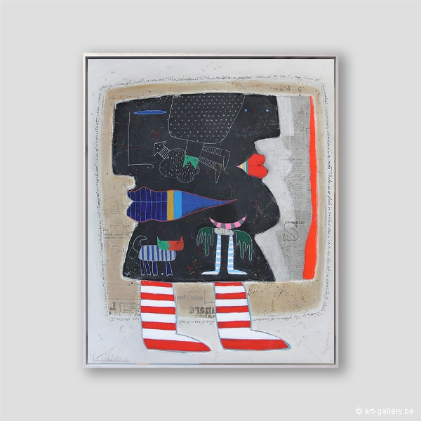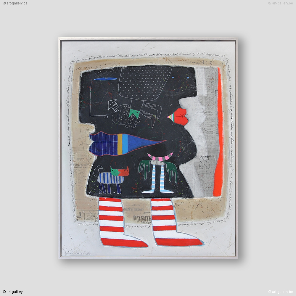 Origineel schilderij op canvas van Frank Slabbinck. Het werk is ingelijst in een witte baklijst.