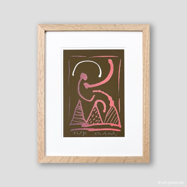 Het werk is ingelijst in ontspiegeld museumglas in een eiken lijst.