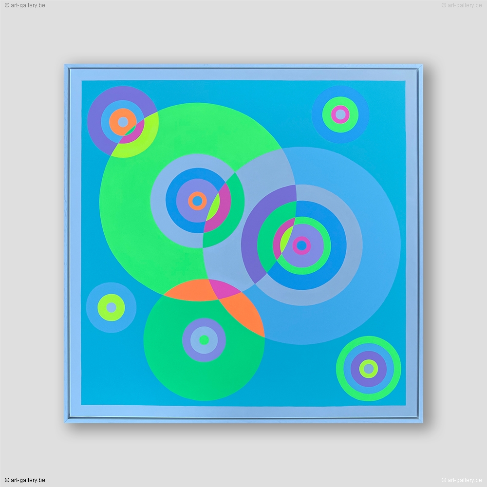 Origineel schilderij van Jessica Lynn Lens. Jessica-Lynn Lens' schilderijen zijn bekend om hun moderne en kleurrijke stijl. Haar werken stralen vaak een gevoel van vreugde en fantasie uit, wat duidelijk blijkt in haar gebruik van heldere kleuren en dynamische vormen. Ze combineert elementen van abstract en figuratief werk, wat haar schilderijen een unieke en herkenbare uitstraling geeft.
