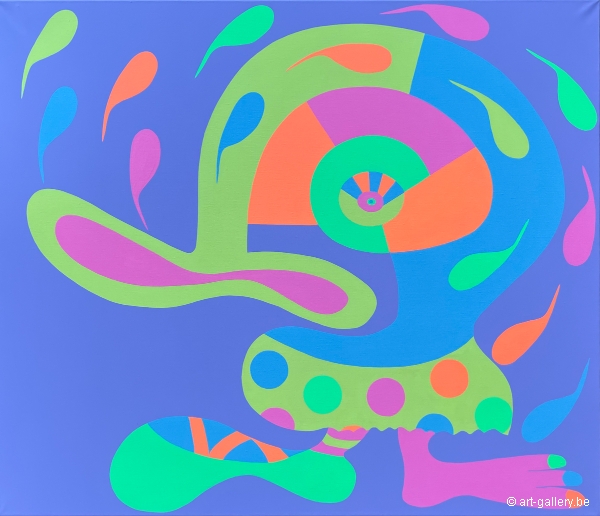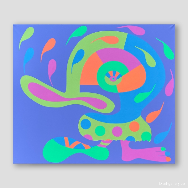 Origineel schilderij van Jessica Lynn Lens. Jessica-Lynn Lens' schilderijen zijn bekend om hun moderne en kleurrijke stijl. Haar werken stralen vaak een gevoel van vreugde en fantasie uit, wat duidelijk blijkt in haar gebruik van heldere kleuren en dynamische vormen. Ze combineert elementen van abstract en figuratief werk, wat haar schilderijen een unieke en herkenbare uitstraling geeft.