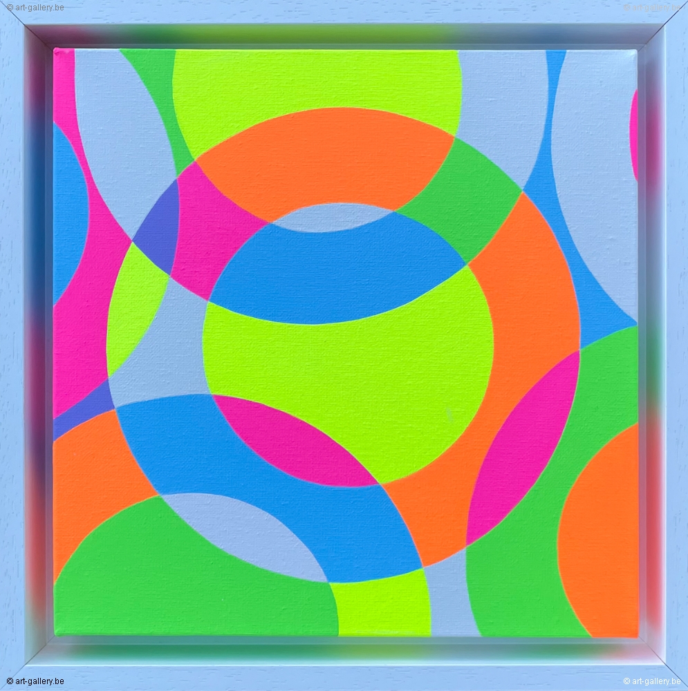 Origineel schilderij van Jessica Lynn Lens. Jessica-Lynn Lens' schilderijen zijn bekend om hun moderne en kleurrijke stijl. Haar werken stralen vaak een gevoel van vreugde en fantasie uit, wat duidelijk blijkt in haar gebruik van heldere kleuren en dynamische vormen. Ze combineert elementen van abstract en figuratief werk, wat haar schilderijen een unieke en herkenbare uitstraling geeft.
