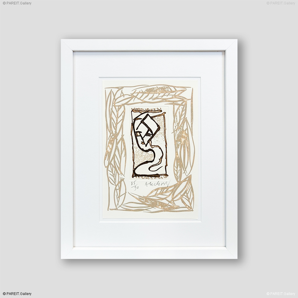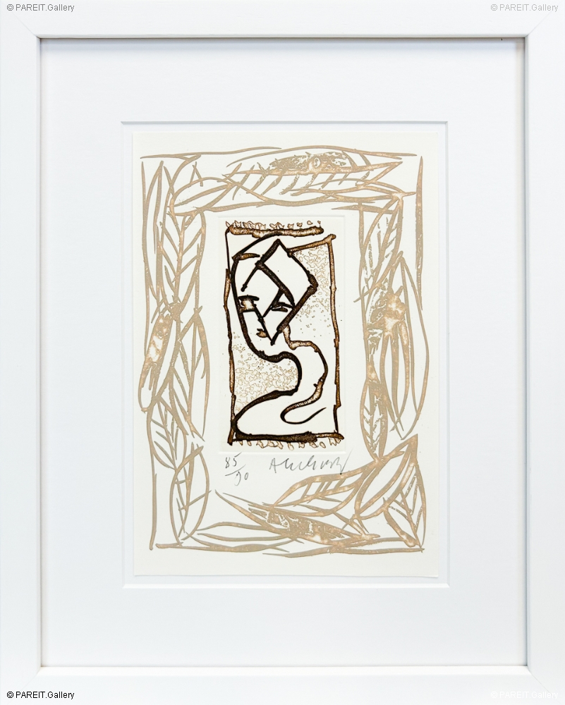 Ets van Pierre Alechinsky. Getekend en genummerd op 90 exemplaren. Het werk is ingelijst in ontspiegeld museumglas in een witte lijst.