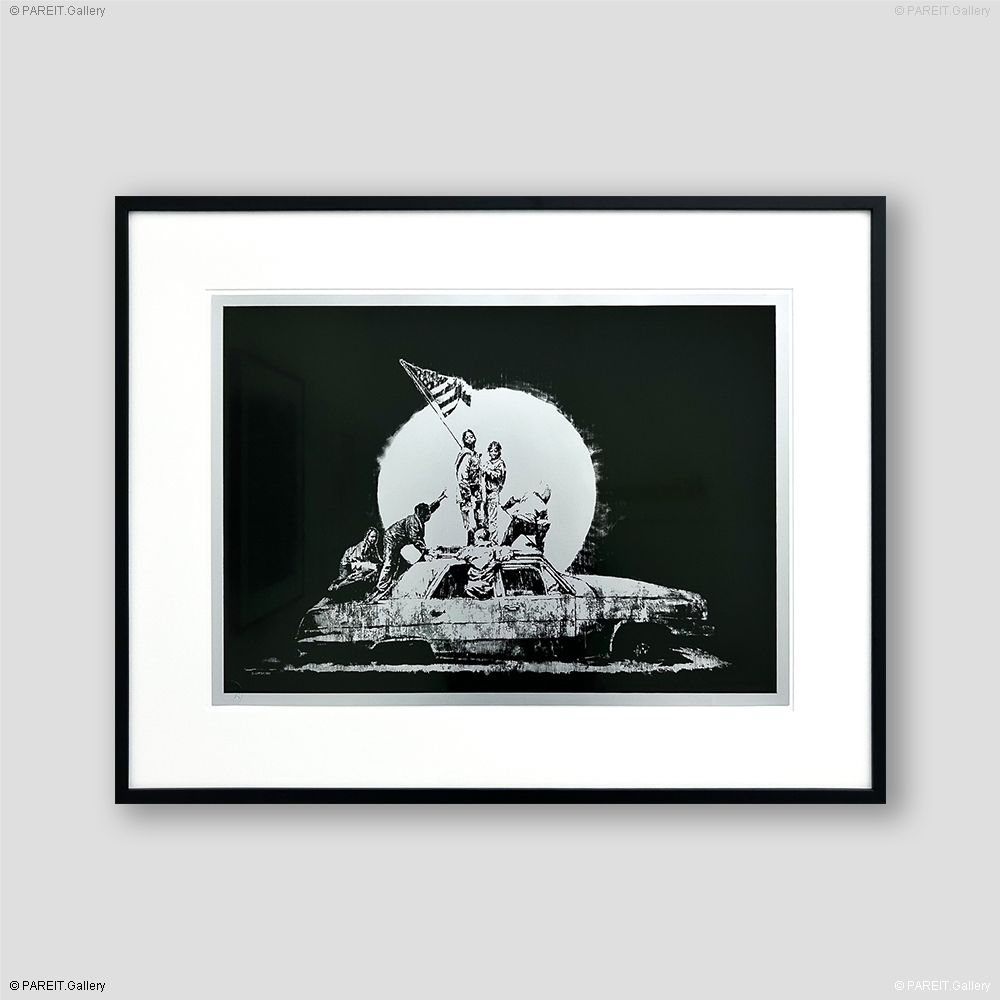 In Flag, zoals in veel van Banksy's werk, blijft de betekenis zweven in dubbelzinnigheid - een jeugd die de American Dream achterna jaagt, of misschien een aangrijpende klaagzang over de prijs van oorlog, vergeten achterstandswijken, of een vervlogen glorie zoals die van de maanlanding...