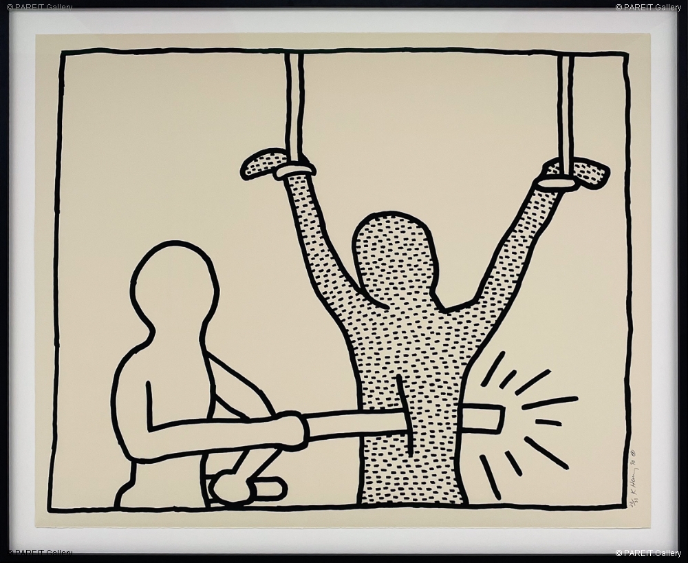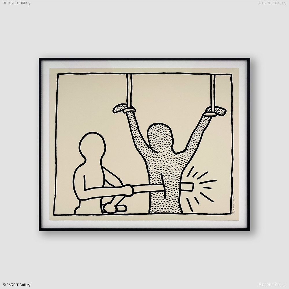 Handgesigneerde en genummerde zeefdruk, beperkt tot slechts 33 exemplaren. Dit bijzondere werk is opgenomen in het prestigieuze boek Keith Haring: Editions On Paper 1982-1990. De zeefdruk is stijlvol ingelijst in een zwarte lijst met ontspiegeld museumglas, wat zorgt voor een optimale presentatie en bescherming.