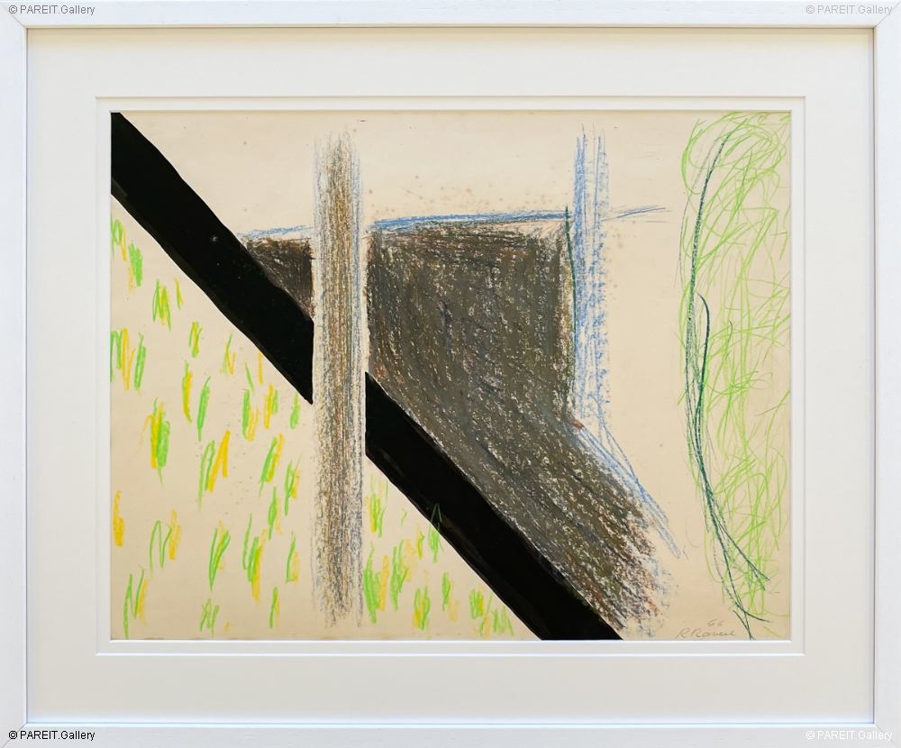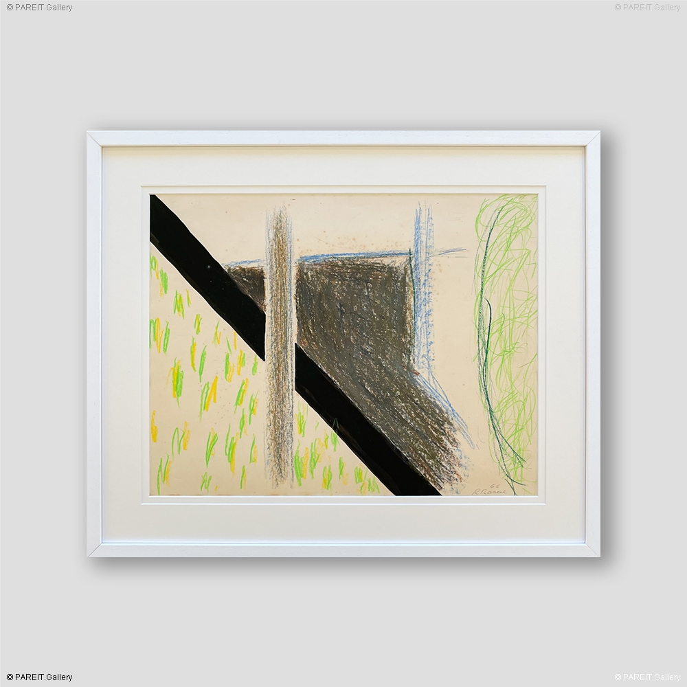 Extra info: Zeer vroeg werk van Roger Raveel. Origineel schilderij op papier getekend en gedateerd door Roger Raveel. Ingelijst in een witte lijst met ontspiegeld museumglas.