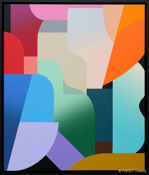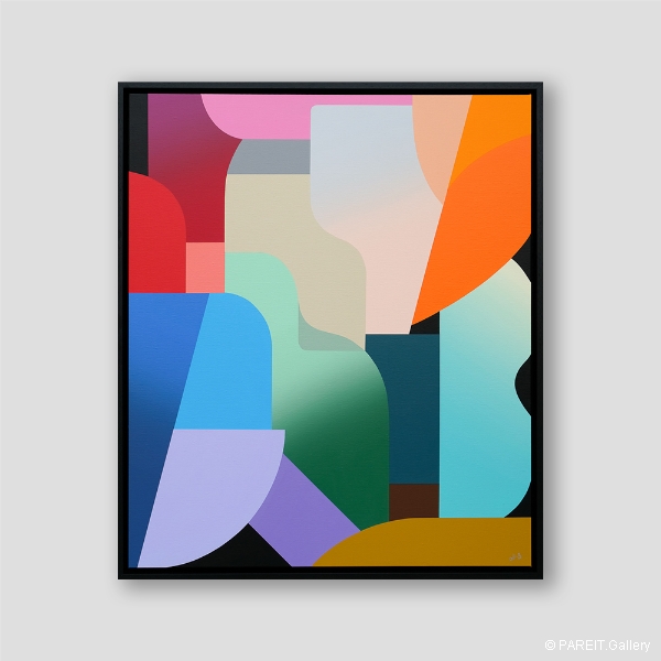 Originele schilderijen op canvas. Het werk is ingelijst in een zwarte lijst.