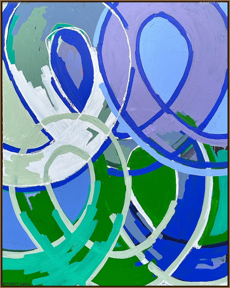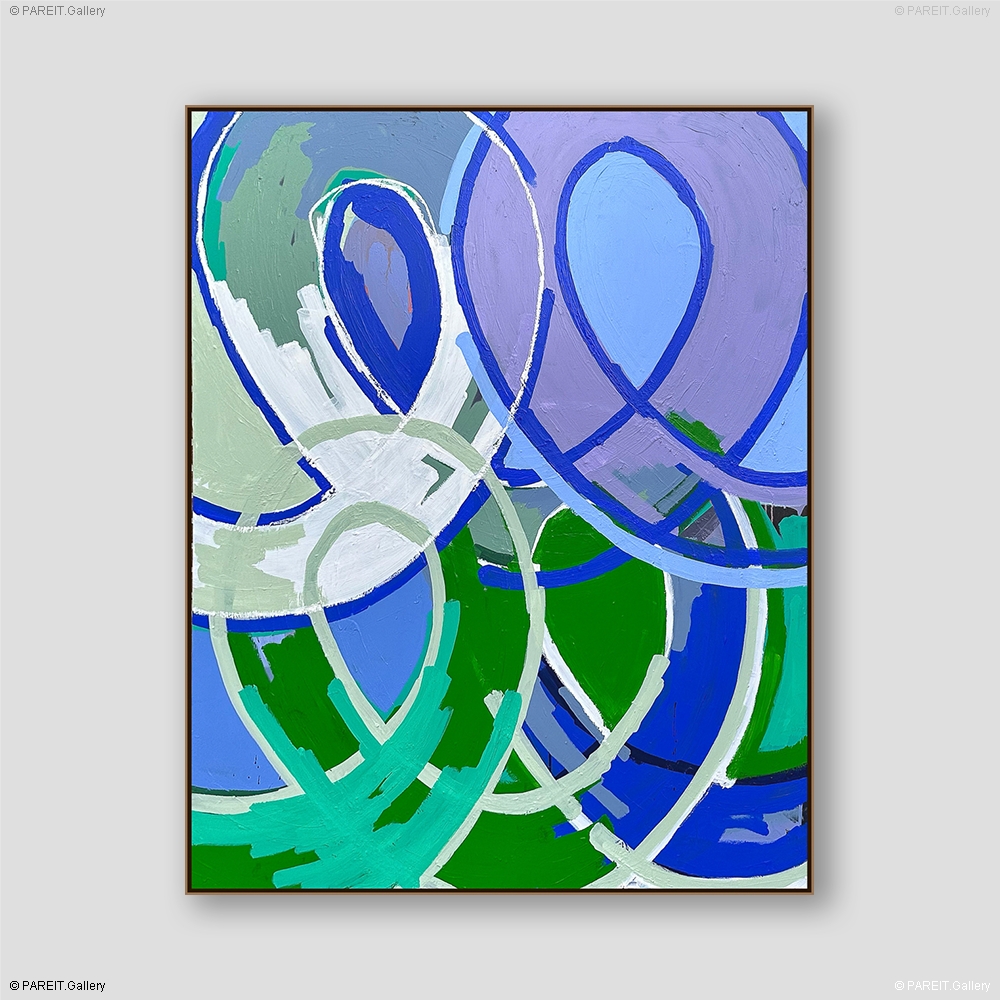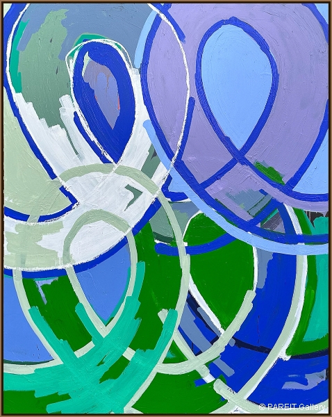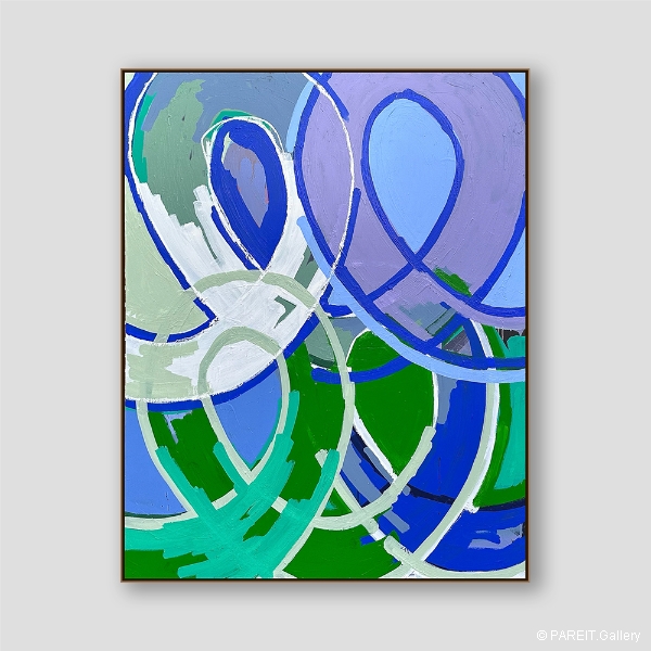 Origineel schilderij op canvas van Piroeh One. Het werk heeft een omlijsting en is klaar om op te hangen. Dit schilderij bevat de gekende Swoons, ellipsvormige cirkels die steeds terugkeren in zijn werk.