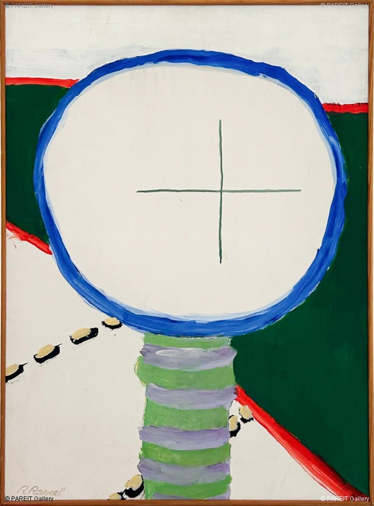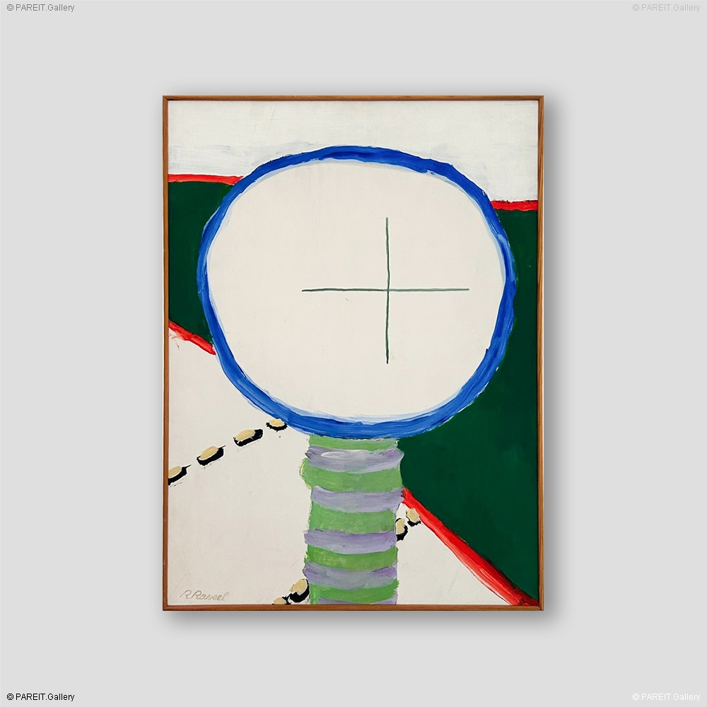 Het schilderij "Het horizontale en verticale van de boom" (1979) toont hoe Roger Raveel op subtiele wijze de spanningen tussen vorm en betekenis verkent. De boomstam, normaal een verticaal element, is hier opgebouwd uit horizontale penseelstreken. Die verrassende omkering verraadt Raveels plezier in visuele dubbelzinnigheid en vormt tegelijk een subtiele verwijzing naar één van zijn grote voorbeelden, Mondriaan. De blauw omrande boomkruin bevat een kruisteken, mogelijk ook als verwijzing naar het spirituele of het hogere. Deze combinatie van aardse vormen en transcendente verwijzingen getuigt van Raveels vermogen om met minimale middelen existentiële vragen op te roepen. "Het horizontale en verticale van de boom" bevond zich eerder in de authentieke woning van de kunstenaar in Machelen-Zulte.