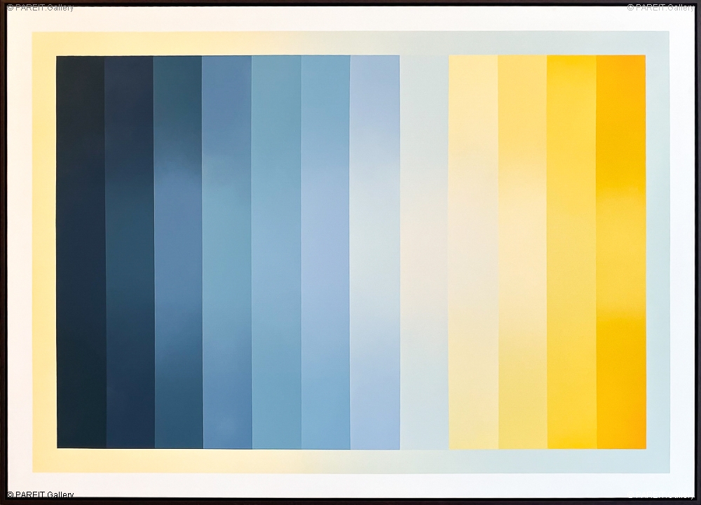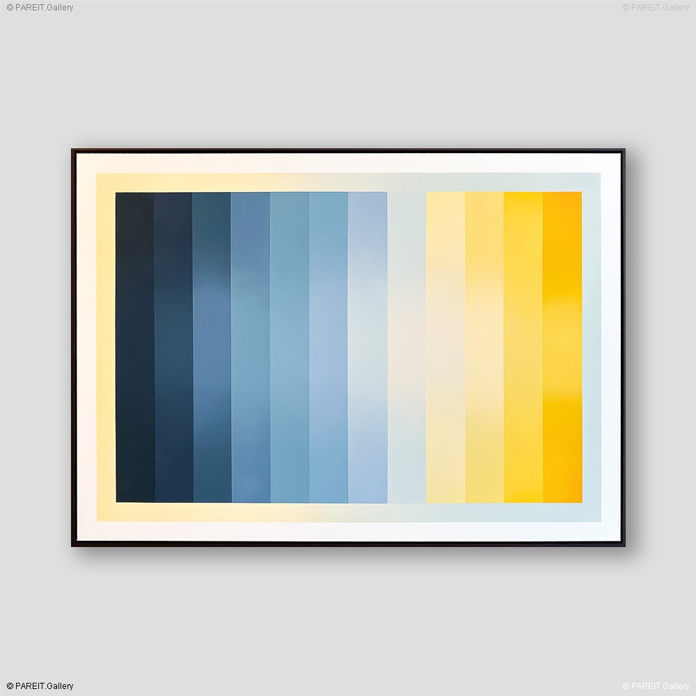Origineel gradient van Mathieu Leenaert. Het werk van Mathieu is geen abstractie van wat dan ook. Het is een dialoog met kleur en licht, zonder vorm, onderwerp of penseelstreek. Het werk is voorzien van een naturel houten lijst.