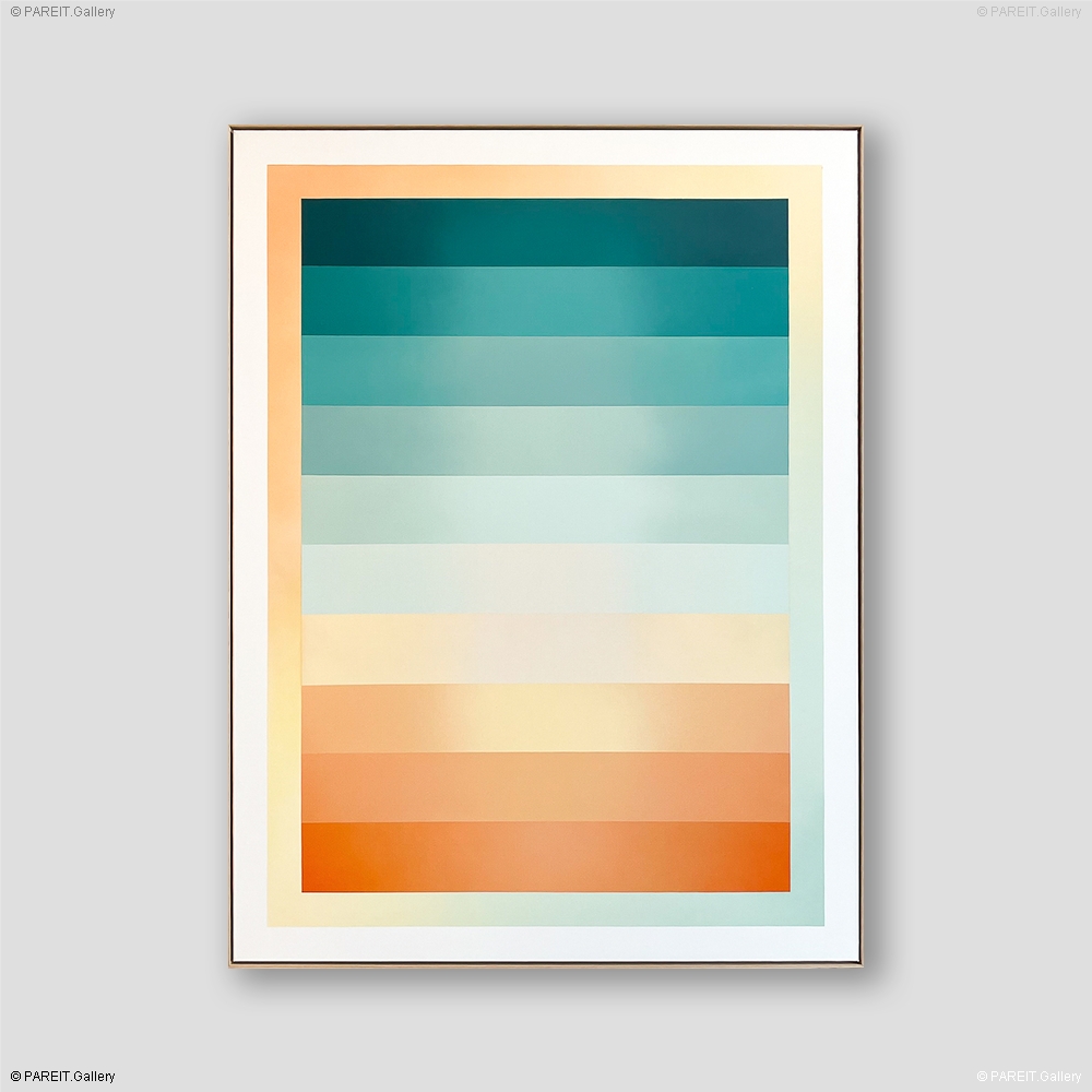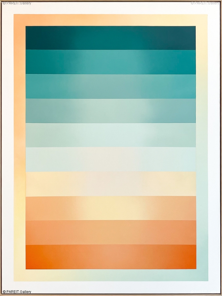 Origineel gradient van Mathieu Leenaert. Het werk van Mathieu is geen abstractie van wat dan ook. Het is een dialoog met kleur en licht, zonder vorm, onderwerp of penseelstreek. Het werk is voorzien van een naturel houten lijst.