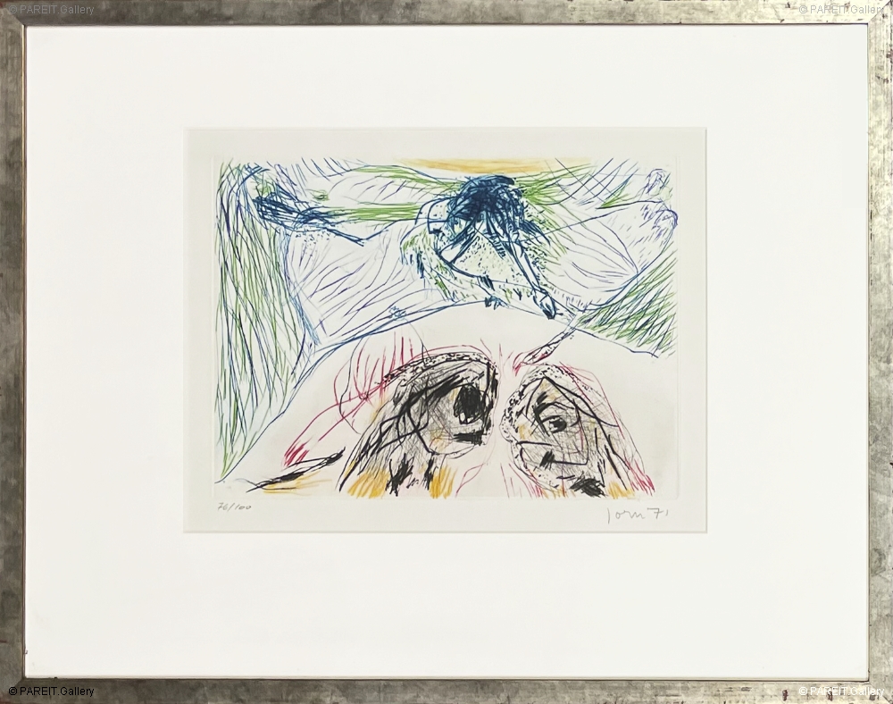 Extra info: "Hibou sortilège" is genummerd en gesigneerd in potlood door de kunstenaar. De titel betekent "Betoverde uil". Het werk werd in 1971 uitgegeven als onderdeel van de suite "Entrée de secours" door Georges Visat in Parijs, een gerenommeerde uitgever van moderne kunstgrafiek. Het betreft een ets en aquatint gedrukt op vélin d'Arches.