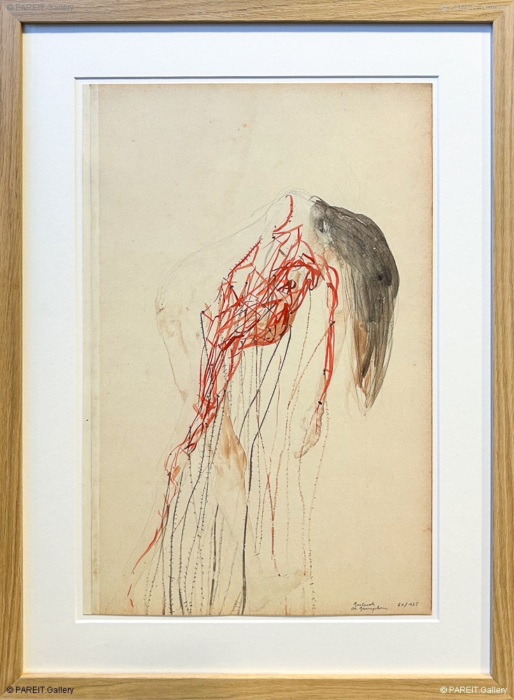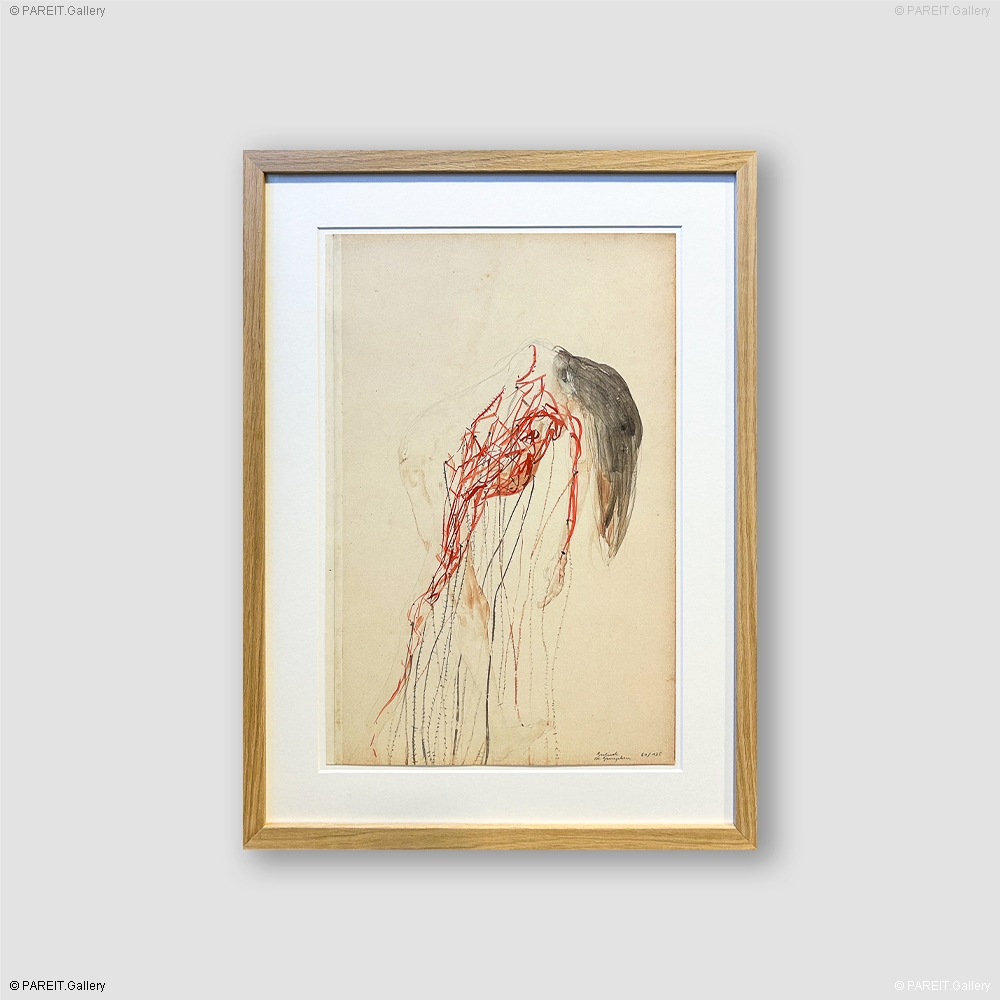 Extra info: In dit werk verenigt Berlinde De Bruyckere kwetsbaarheid en schoonheid in een verstilde, maar tegelijk krachtige en indringende vrouwelijke figuur. Deze offsetprint op papier, gesigneerd in potlood en genummerd 60/125, weerspiegelt de poëtische kracht en menselijke intensiteit die De Bruyckere's oeuvre kenmerken, versterkt door de expressieve rode tint.