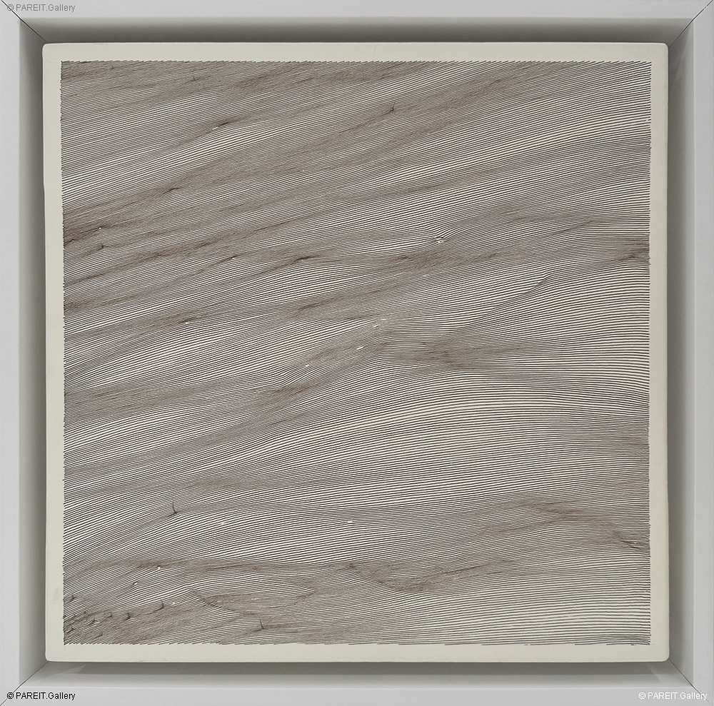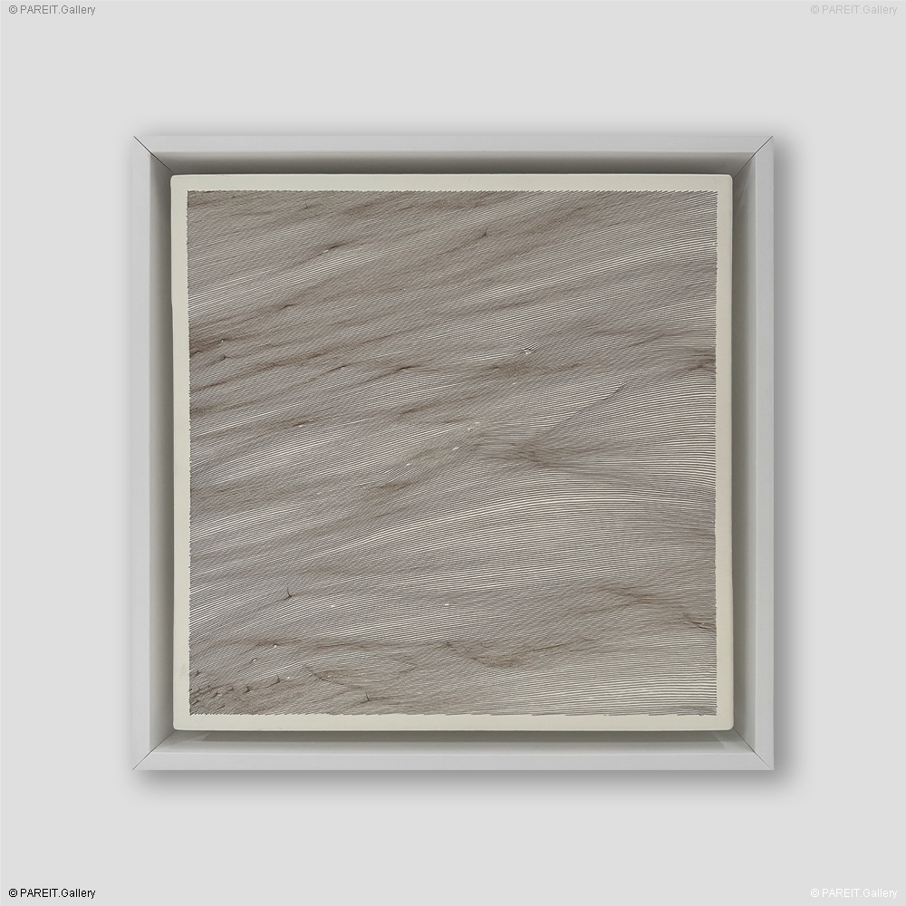 Extra info: Origineel werk in gepigmenteerde inkt op Fabriano-papier, prachtig ingelijst in een verfijnde witte houten baklijst die het werk subtiel accentueert.