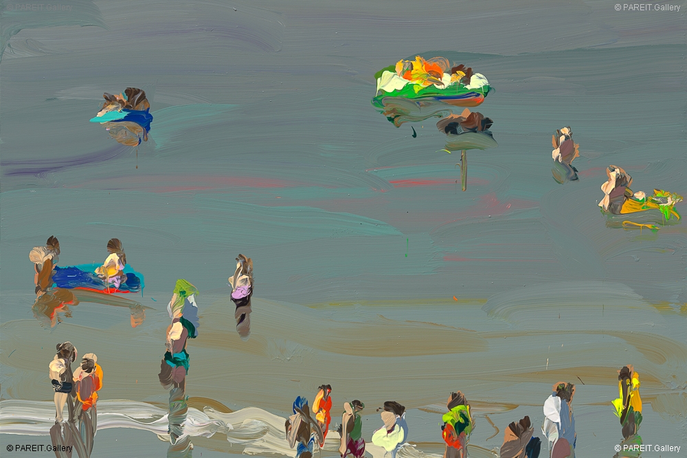 Een opvallend en recent element in deze reeks zijn de subtiele accenten in zelfontwikkelde fluoverf: kleine, maar krachtige ingrepen die de beelden doen oplichten en hen een onweerstaanbare levendigheid verlenen. "Neonkleuren hebben het vermogen om feller te gloeien dan wit", aldus de kunstenaar. Vooral in de lichte zomerkledij van de badgasten zorgt dat effect voor een intense visuele spanning: het oog blijft als het ware haken aan de felheid. De contrasten worden verscherpt, en de lichtste zones lijken haast letterlijk te stralen. De "Beach"-reeks verenigt zo technische virtuositeit met een zomerse, herkenbare energie die blijft fascineren.