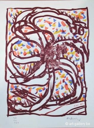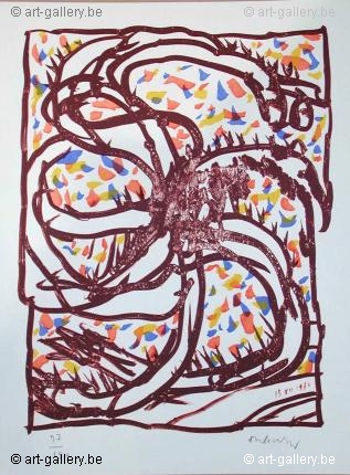 Lithografie van Pierre Alechinsky op rijstpapier. Getekend en genummerd op 150 exemplaren.